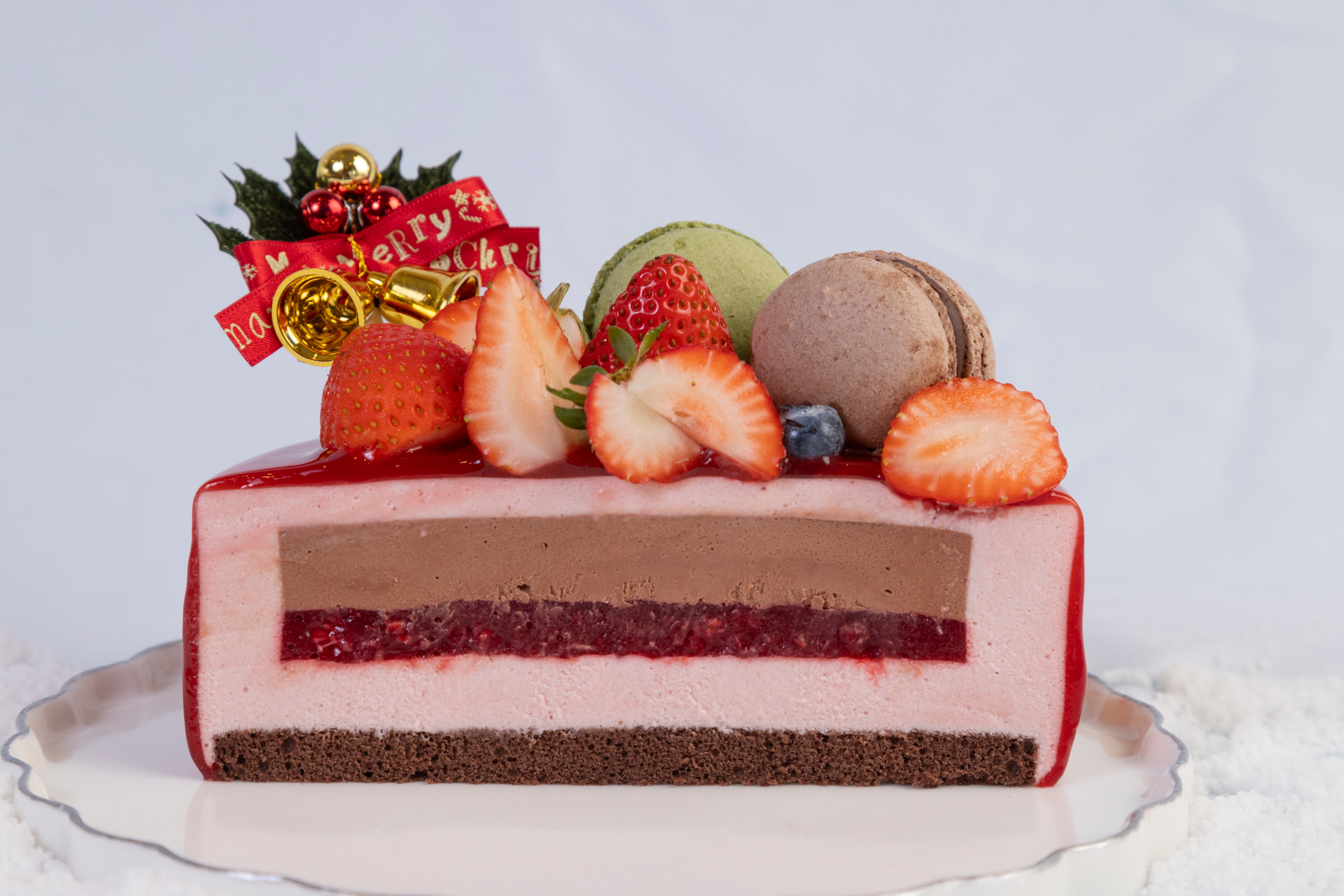 「酸味ある苺」と「ビターショコラ」「フランボワーズジュレ」3層で仕上げたケーキです。